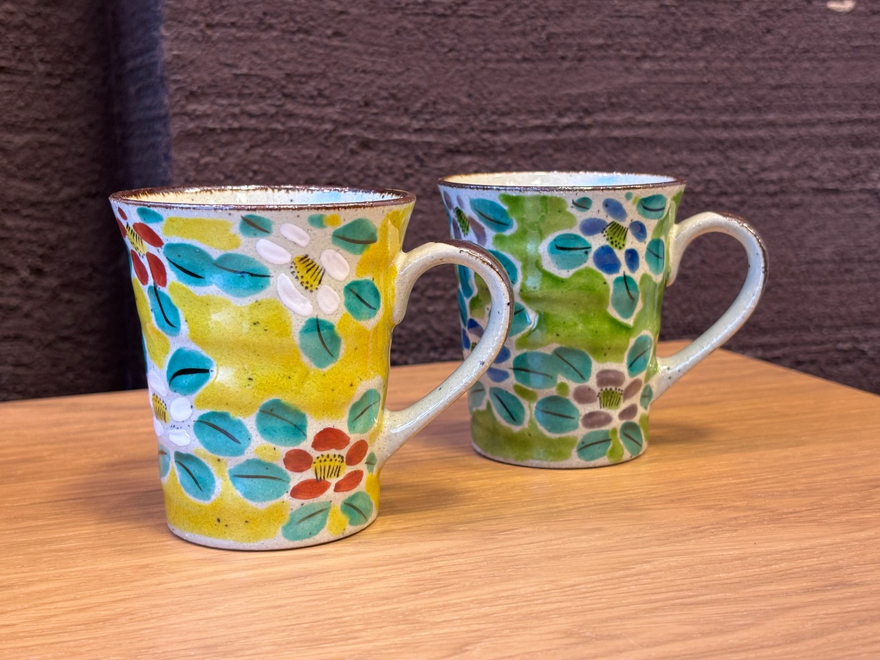 様々な花文様が描かれたこのマグカップは、多彩な色合いとデザインが楽しめます。容量は約300mlで、ホットドリンクやアイスドリンクにも対応できる実用的なサイズです。あなたのスタイルに合わせた一つを見つけてください。