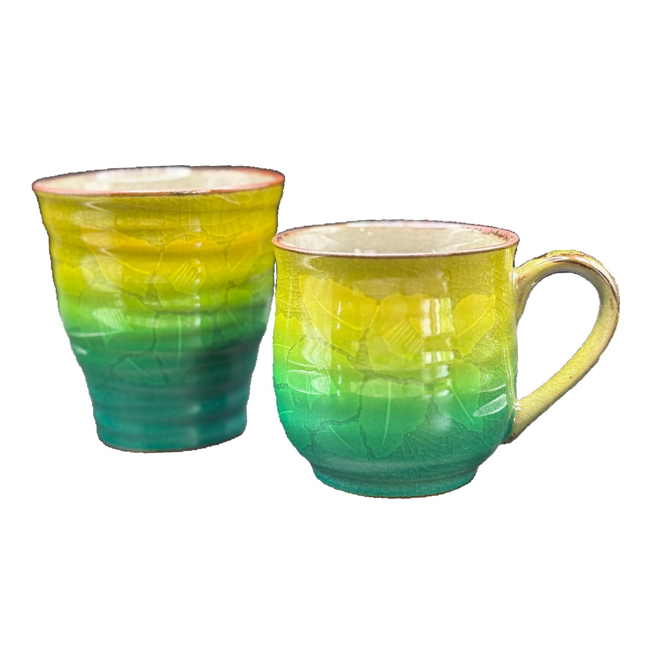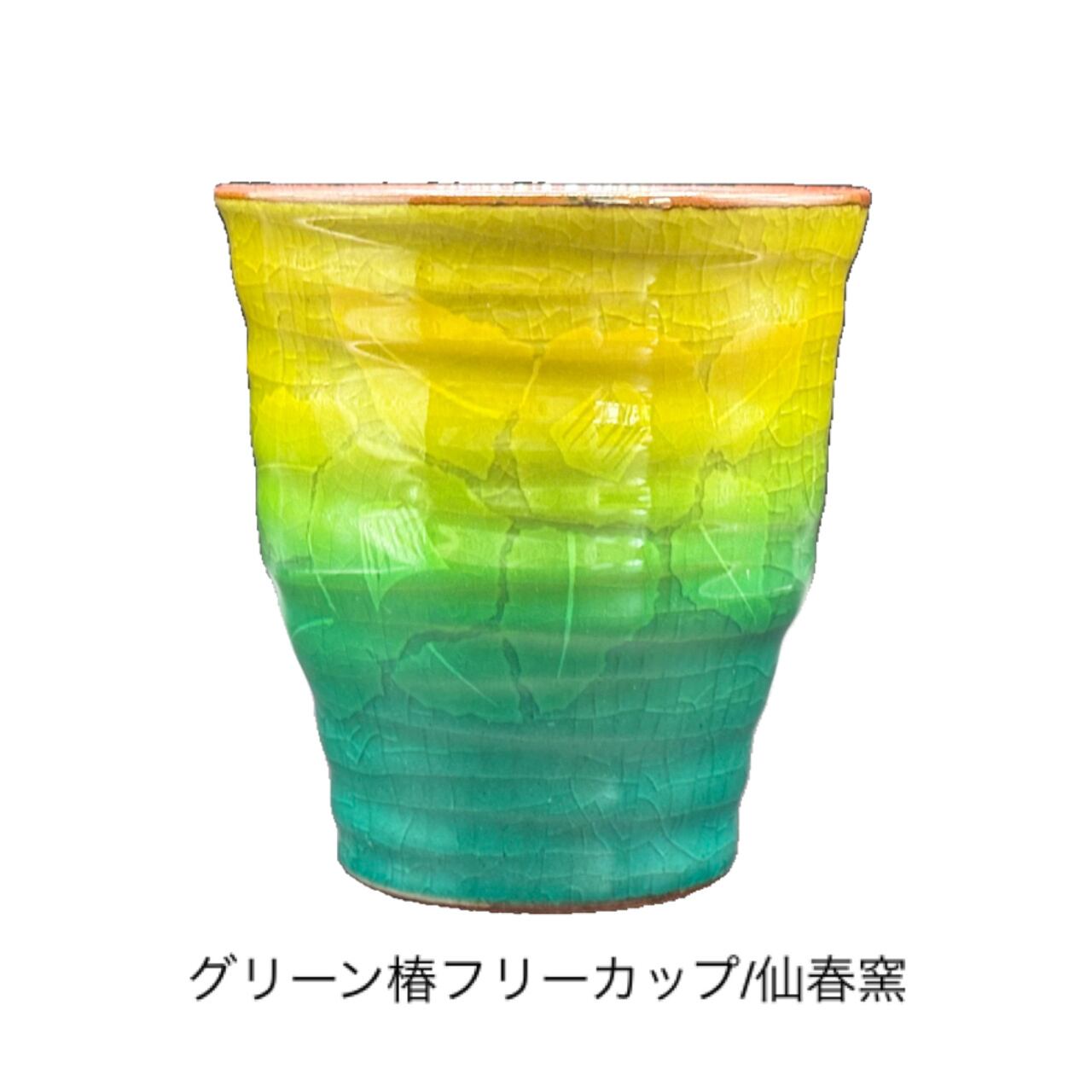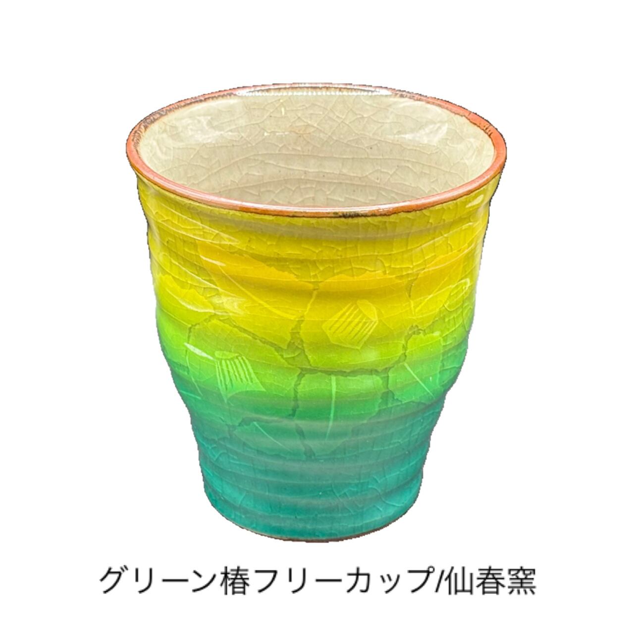 【九谷焼】グリーン椿フリーカップ/仙春窯