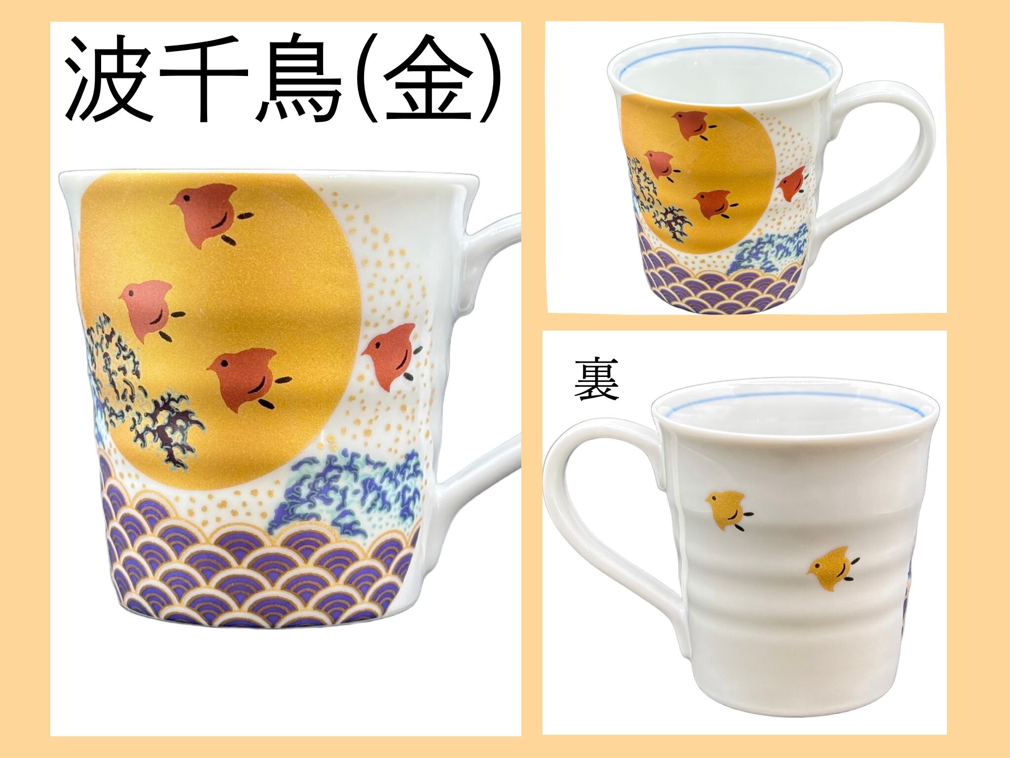 手作り・焼き物のため、色味や模様に微細な個体差が生じることがありますが、それが商品の魅力とお楽しみいただけます。波千鳥マグカップで、あなただけの特別な時間をお過ごしください。