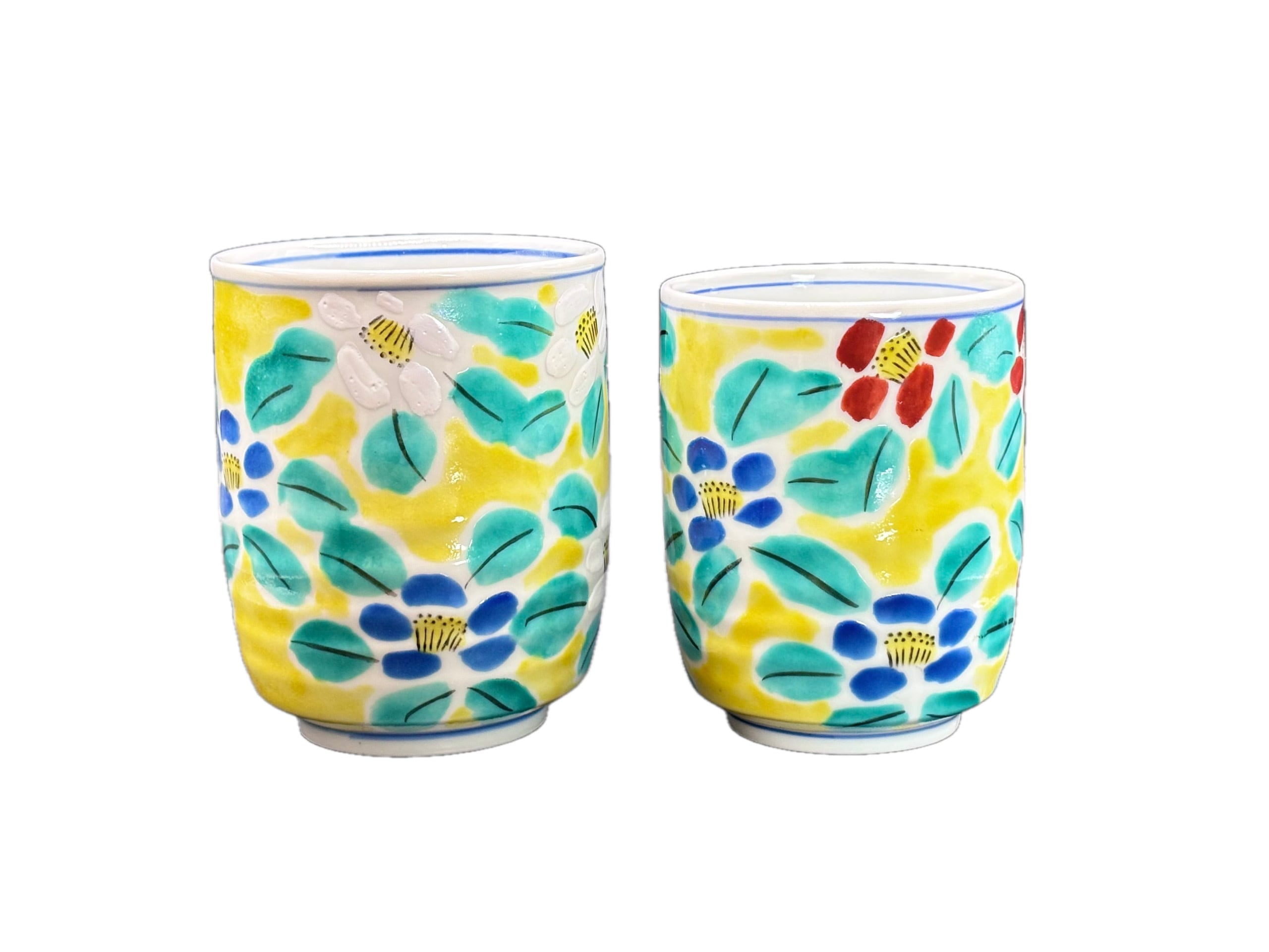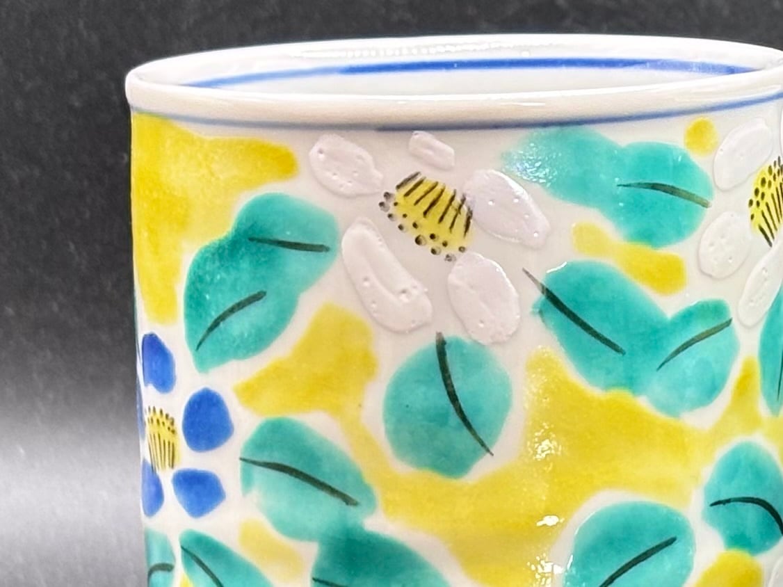 手作りのため微細な色味や模様の個体差が生じることがありますが、それがこの花文組湯呑の独特な魅力です。ぜひ自分だけの特別な一品を見つけてください。